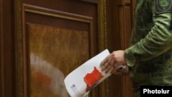 Հենց այն պահին, երբ դաշնակցական Արծվիկ Մինասյանը հայտարարում էր, որ իշխանությունն ուրանում է Արցախը, խորհրդարանի անվտանգության աշխատակիցը զուգահեռ պոկում էր ամբիոնին փակցված Հայաստանի և Արցախի միասնական քարտեզը։